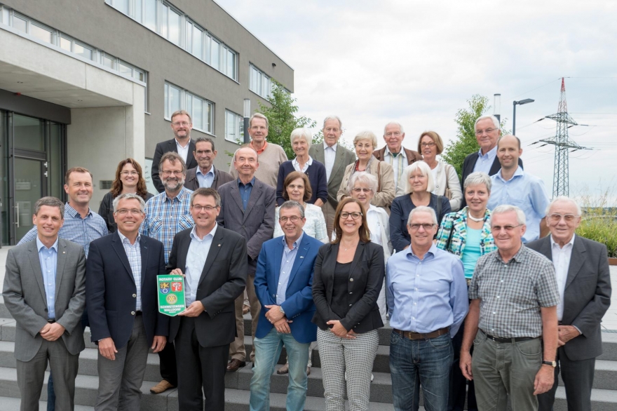 Vordere Reihe: Landrat Stefan Dallinger (2.v.l.), Michael Gutjahr, Präsident Rotary Club Schwetzingen-Walldorf (3.v.l), Peter Mülbaier, Geschäftsführer AVR UmweltService (4.v.l.), Katja Deschner, Geschäftsführerin AVR Kommunal (5.v.l.)