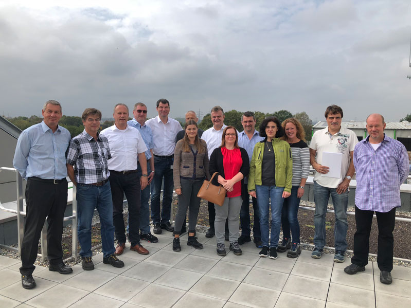 Teilnehmer des Entsorgeraudits am Unternehmensstandort der AVR GewerbeService in Heidelberg (v.l.n.r.): Michael Förderer (ABB-Stotz-Kontakt), Dr. Bernhard Mandl (Heidelberger Druckmaschinen), Martin Schmitz (Geschäftsführer AVR GewerbeService), Stephan Vogt (Betriebsleiter AVR GewerbeService), Randolf Troche (Evo-Bus Mannheim), Svenja Reichard (Evo-Bus Mannheim), Ulrich Hofmann (Heidelberger Druckmaschinen), Stefan Pitsch (Vertriebsleiter AVR GewerbeService), Michaela Vogel (Heidelberger Druckmaschinen), Peter Becker (Heidelberger Druckmaschinen), Marie-Claude Piot (Vertrieb AVR GewerbeService), Nina Fuchs (Auftragsmanagement AVR GewerbeService), Marc Staat (Vectron / Microsemi), Patrik Köster (Anlagenleiter AVR GewerbeService)
