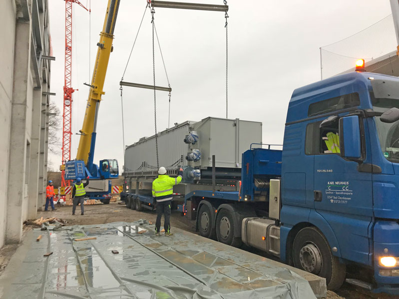 Aus Müll wird grüne Energie: Der erste Gärrestkonditionierer für die neue AVR Bioabfallvergärungsanlage wird montiert