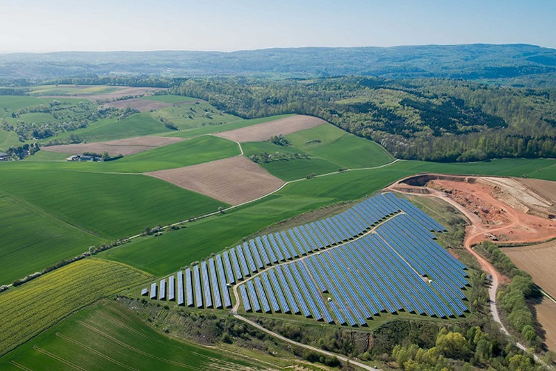 Bildunterschrift: In Flora und Fauna eingebettet. Luftaufnahme des Solarpark Lobbach.